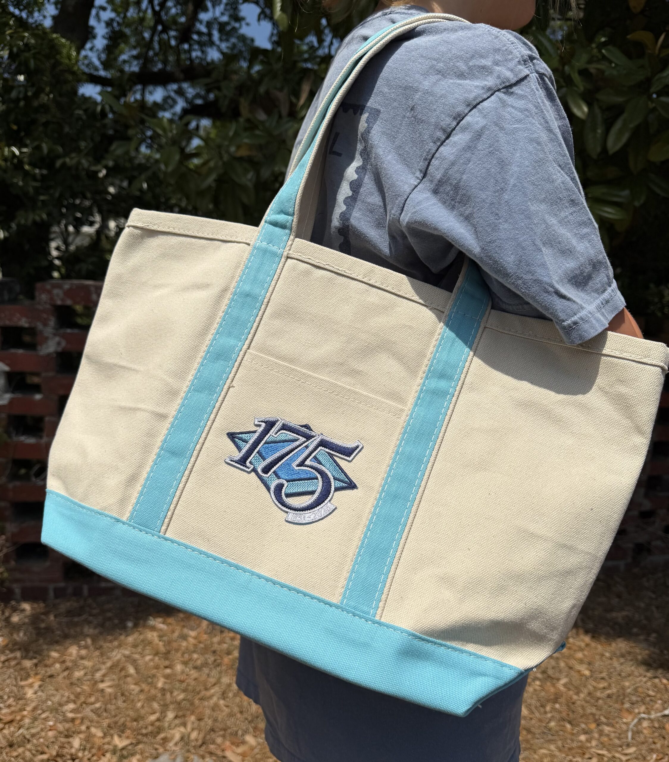 Celebrate 175 years of ADPi’s Sisterhood with this 1851 Shop Exclusive! This Medium Boat Tote features a zip top closure and light blue trim with Alpha Delta Pi’s 175th Anniversary logo. Measures 12″ H x 18″ W x 5.5″ D
