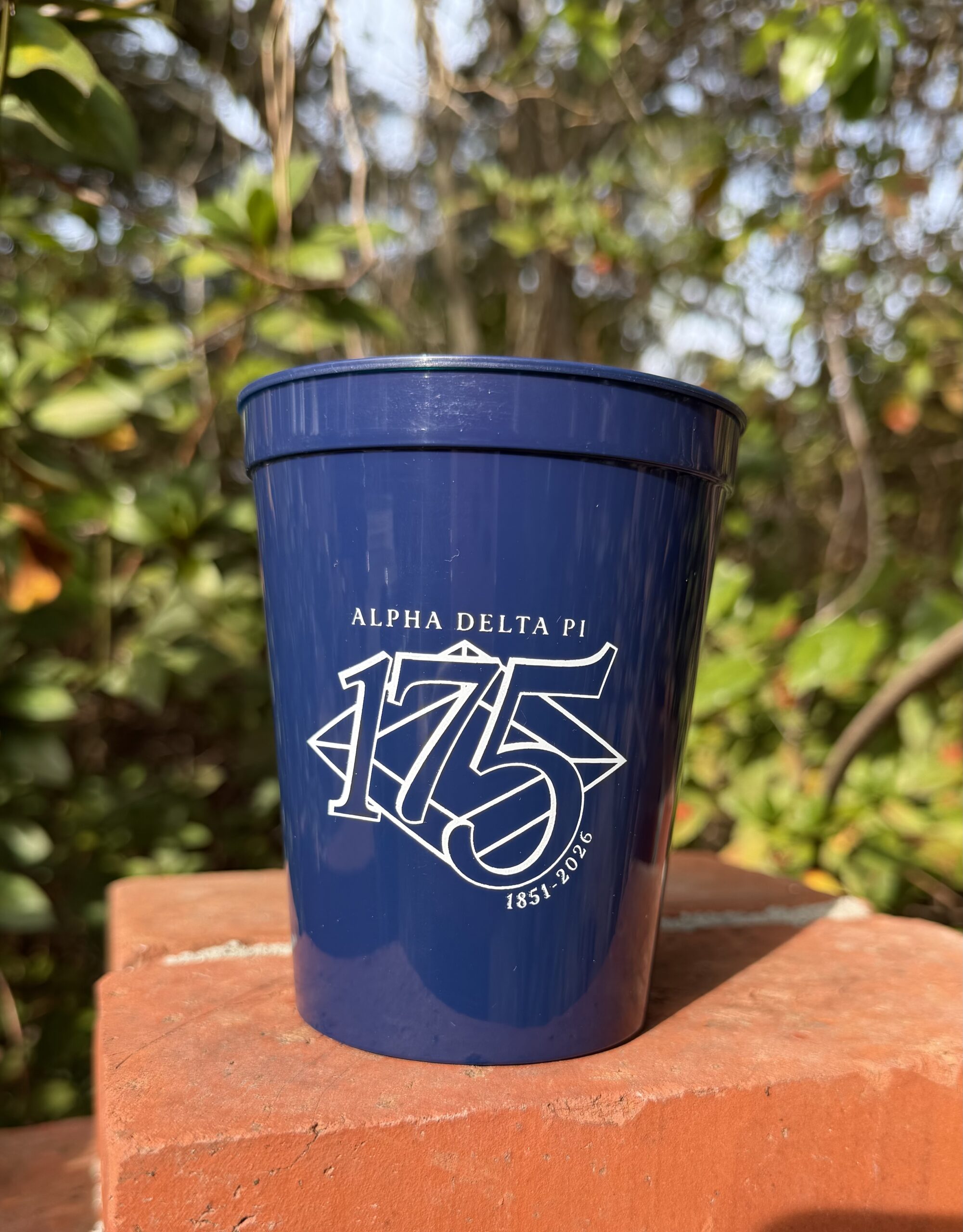 Cheers to 175 Years! Celebrate Alpha Delta Pi’s 175th Anniversary with these Navy Plastic cups. Holds 16 fl oz. Each order comes with 2 cups.