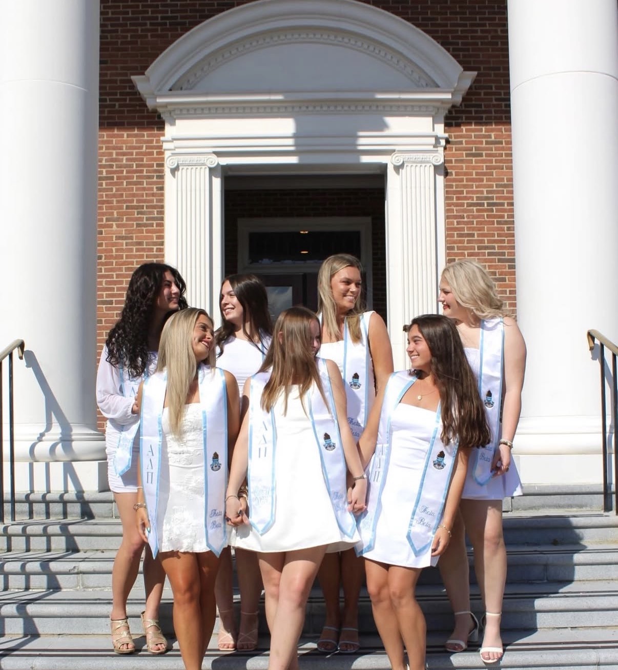 For a custom, one of a kind stole, this is the way to go! This 72″ white stole with light blue trim includes ADPi’s Crest with Alpha Delta Pi’s Greek Letters, chapter and class of year in light blue thread.