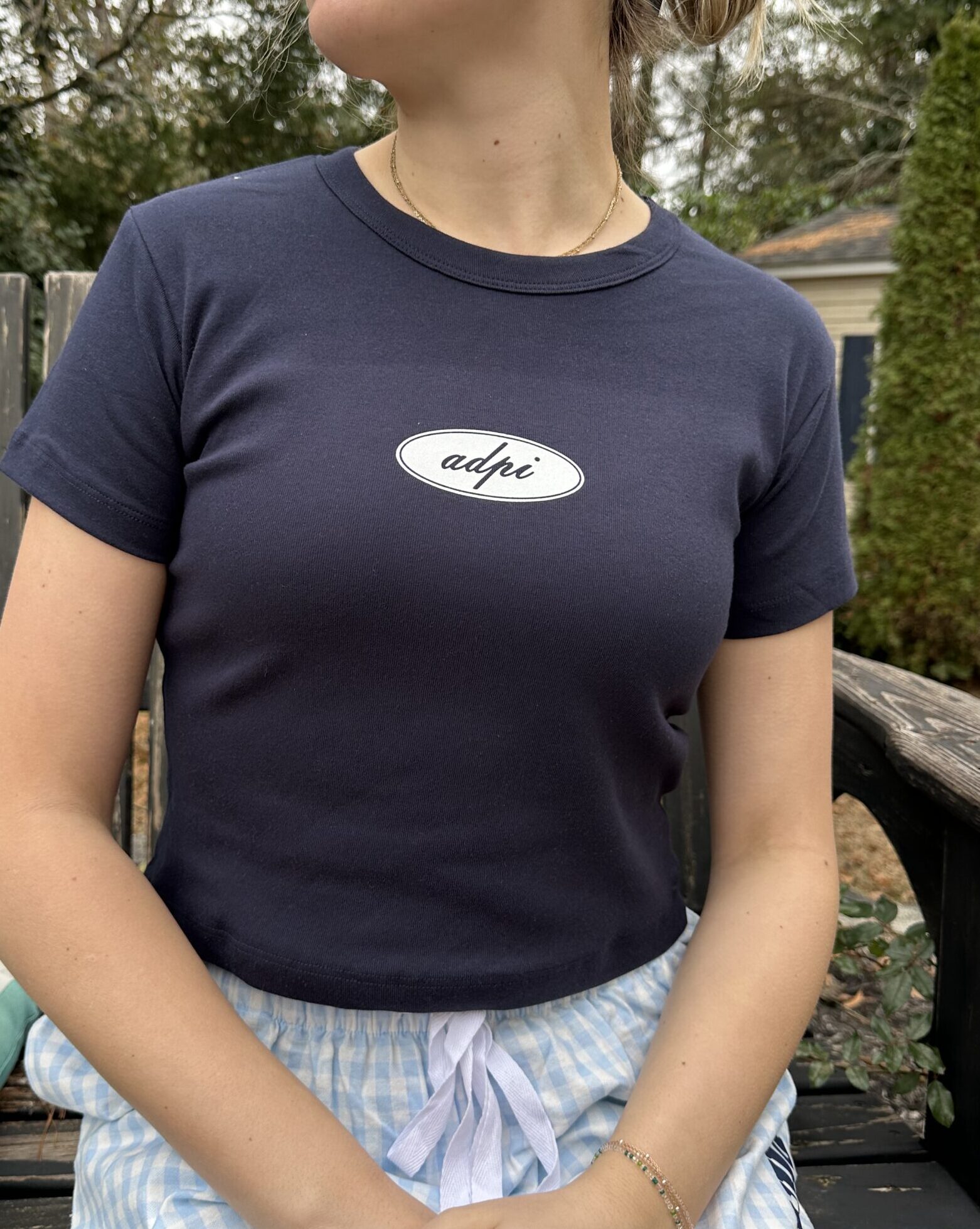 Simple and Adorable is the best way to describe this tee! Featuring a white script design, this midnight blue (navy) crop tee is 100% cotton and made in the USA